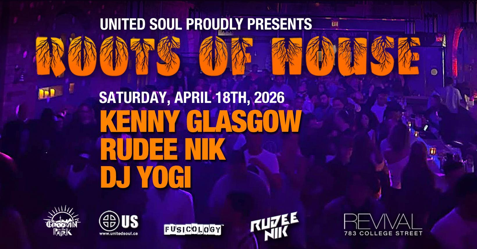 Roots Of House with Kenny Glasgow, RUDEE NIK & DJ Yogi